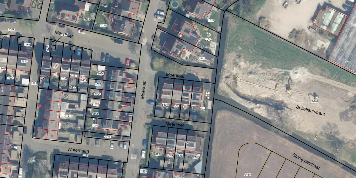 Het perceel waarop Meerkoet 116 staat heeft een oppervlakte van 121 m². Dit is een middelgroot perceel. De perceeloppervlakte wordt geregistreerd door het Kadaster. Gedetailleerde informatie over de maten van dit perceel kunt u vinden in het rapport Kadastrale kaart met maatvoering van Meerkoet 116.