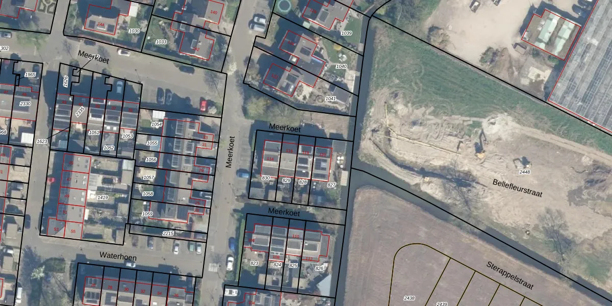 Het perceel waarop Meerkoet 118 staat heeft een oppervlakte van 121 m². Dit is een middelgroot perceel. De perceeloppervlakte wordt geregistreerd door het Kadaster. Gedetailleerde informatie over de maten van dit perceel kunt u vinden in het rapport Kadastrale kaart met maatvoering van Meerkoet 118.