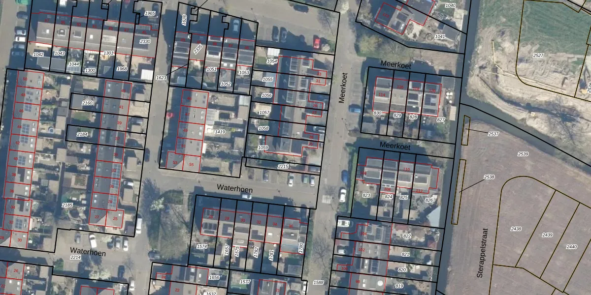 Gebruik de zoekbalk of klik op een perceel voor informatie over de adressen binnen dit perceel.