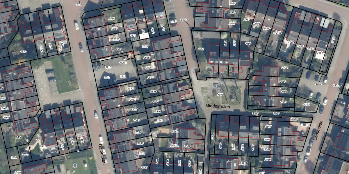 Het perceel waarop Middelmolen 11 staat heeft een oppervlakte van 173 m². Dit is een middelgroot perceel. De perceeloppervlakte wordt geregistreerd door het Kadaster. Gedetailleerde informatie over de maten van dit perceel kunt u vinden in het rapport Kadastrale kaart met maatvoering van Middelmolen 11.