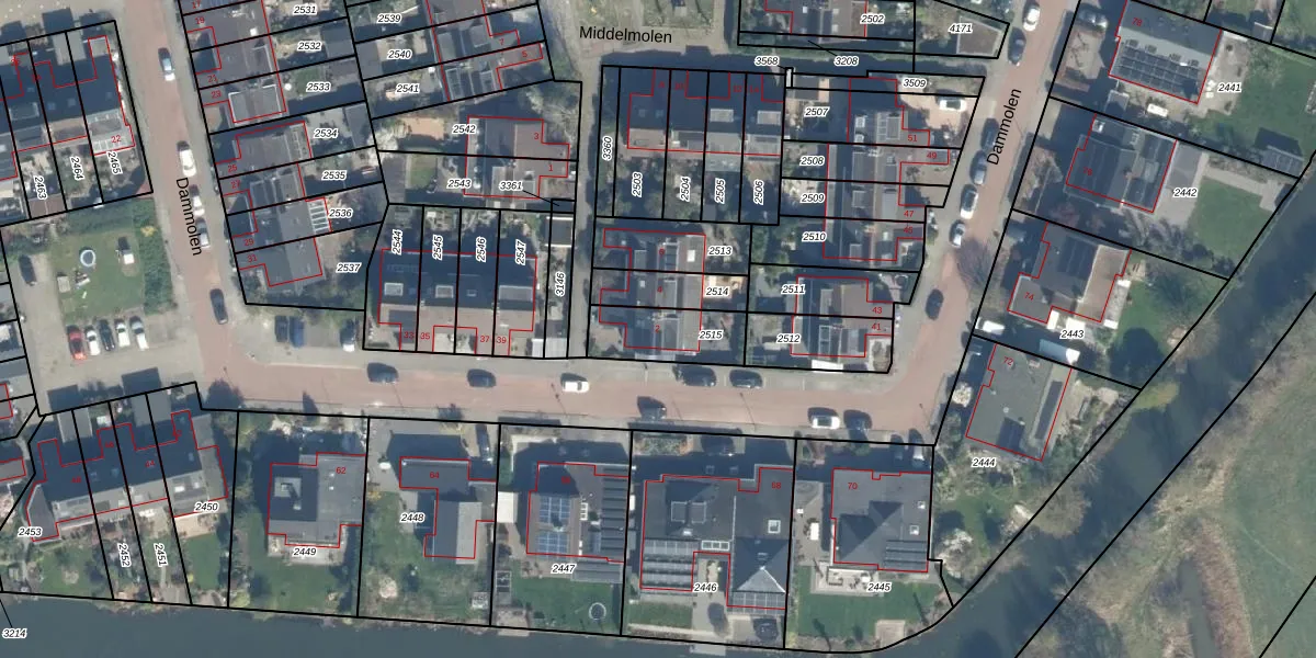 Het perceel waarop Middelmolen 2 staat heeft een oppervlakte van 187 m². Dit is een middelgroot perceel. De perceeloppervlakte wordt geregistreerd door het Kadaster. Gedetailleerde informatie over de maten van dit perceel kunt u vinden in het rapport Kadastrale kaart met maatvoering van Middelmolen 2.