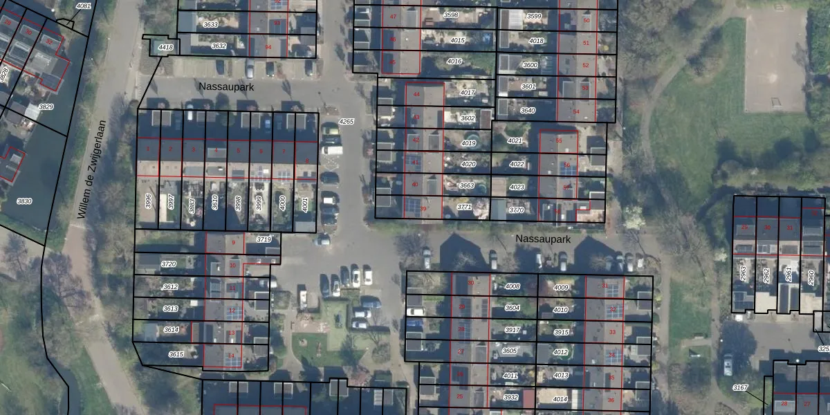 Het perceel waarop Nassaupark 39 staat heeft een oppervlakte van 155 m². Dit is een middelgroot perceel. De perceeloppervlakte wordt geregistreerd door het Kadaster. Gedetailleerde informatie over de maten van dit perceel kunt u vinden in het rapport Kadastrale kaart met maatvoering van Nassaupark 39.