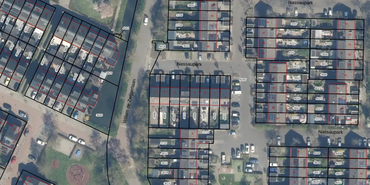 Het perceel waarop Nassaupark 4 staat heeft een oppervlakte van 157 m². Dit is een middelgroot perceel. De perceeloppervlakte wordt geregistreerd door het Kadaster. Gedetailleerde informatie over de maten van dit perceel kunt u vinden in het rapport Kadastrale kaart met maatvoering van Nassaupark 4.