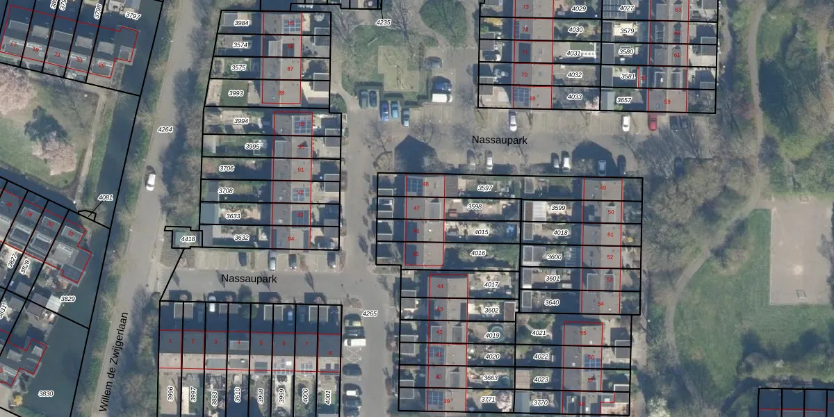 Het perceel waarop Nassaupark 47 staat heeft een oppervlakte van 187 m². Dit is een middelgroot perceel. De perceeloppervlakte wordt geregistreerd door het Kadaster. Gedetailleerde informatie over de maten van dit perceel kunt u vinden in het rapport Kadastrale kaart met maatvoering van Nassaupark 47.