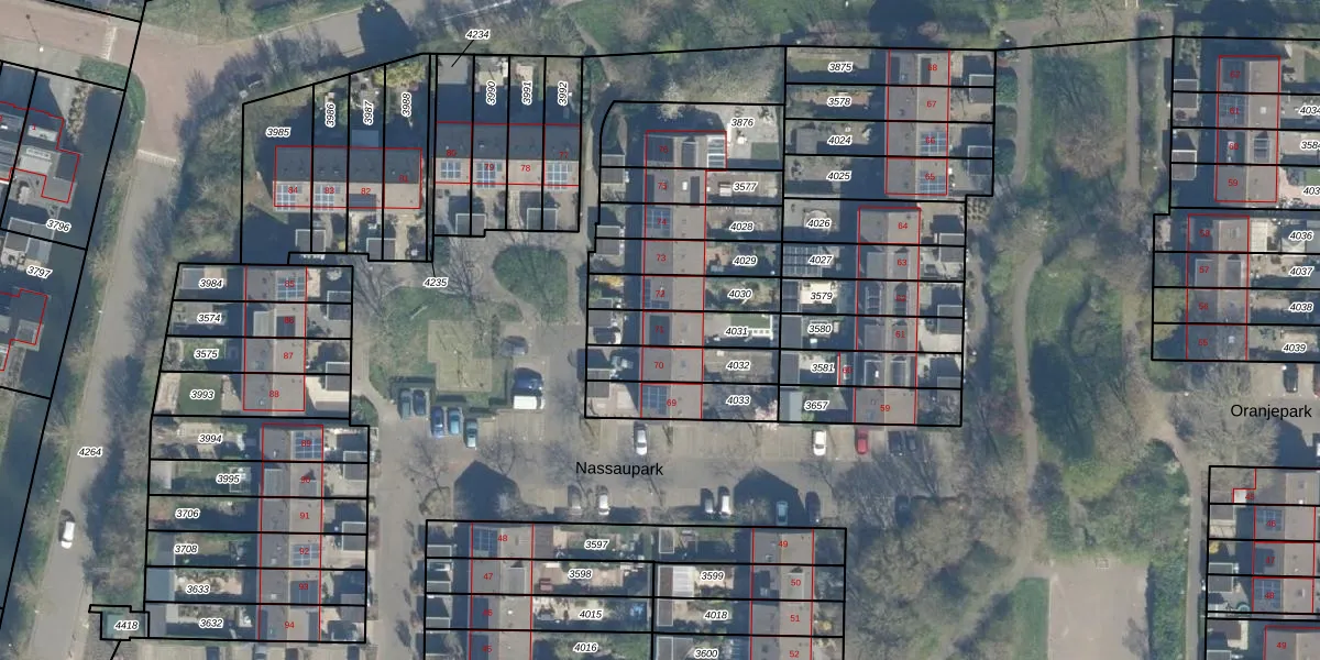 Gebruik de zoekbalk of klik op een perceel voor informatie over de adressen binnen dit perceel.