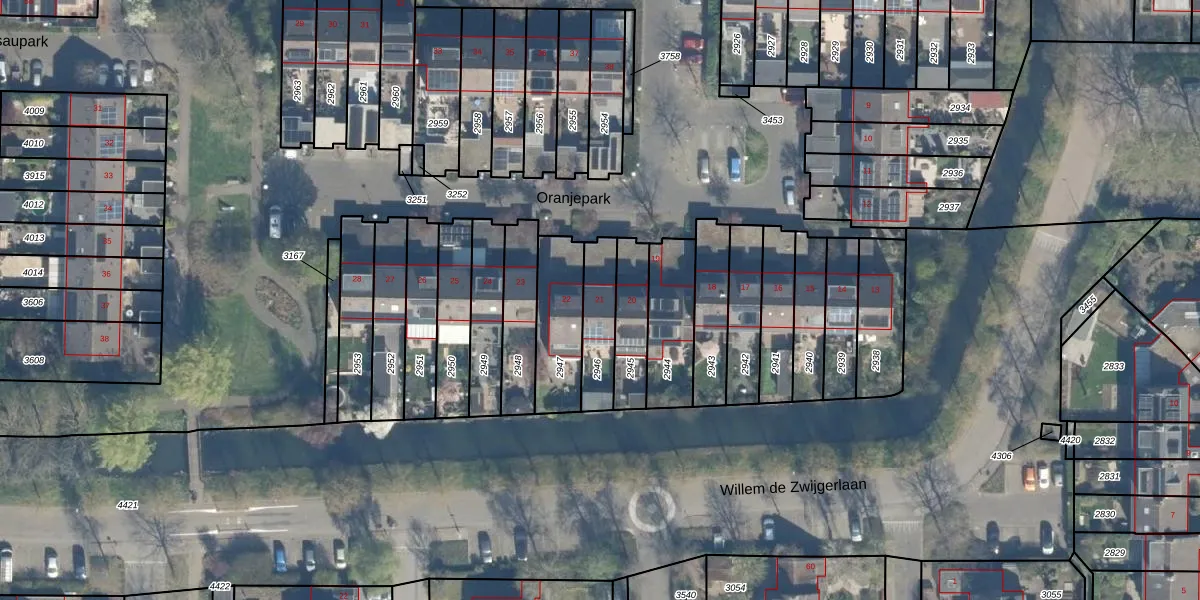 Gebruik de zoekbalk of klik op een perceel voor informatie over de adressen binnen dit perceel.