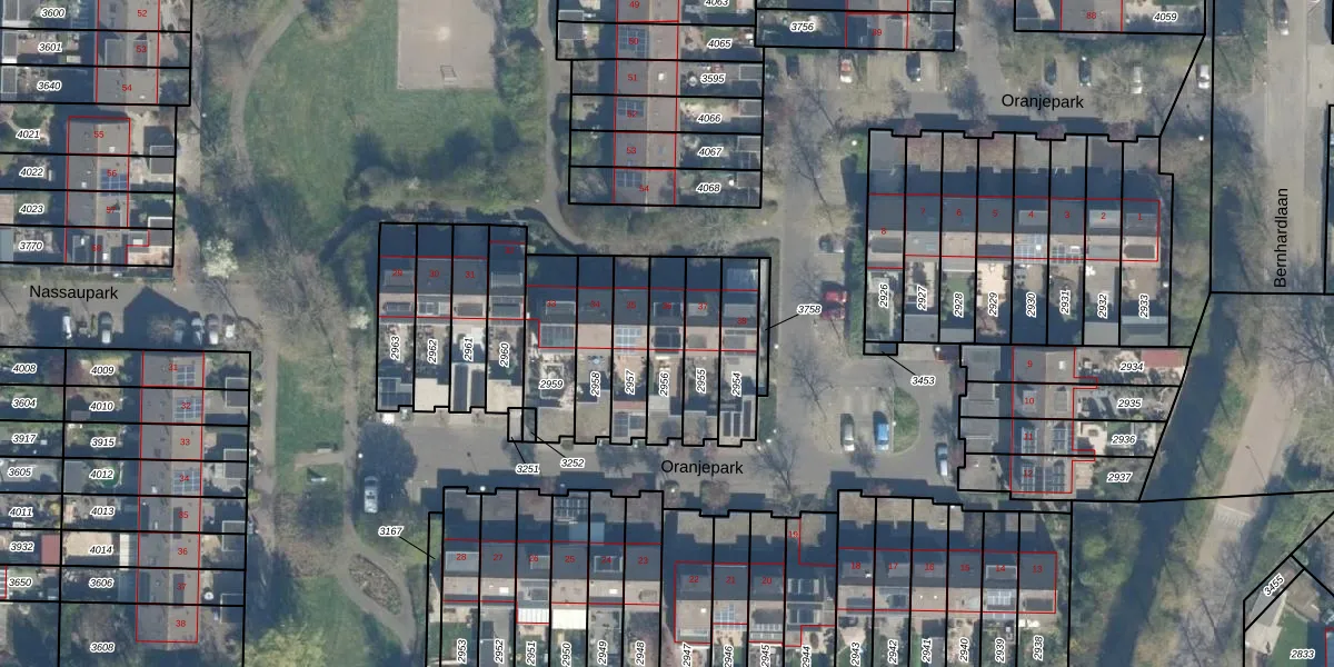 Gebruik de zoekbalk of klik op een perceel voor informatie over de adressen binnen dit perceel.