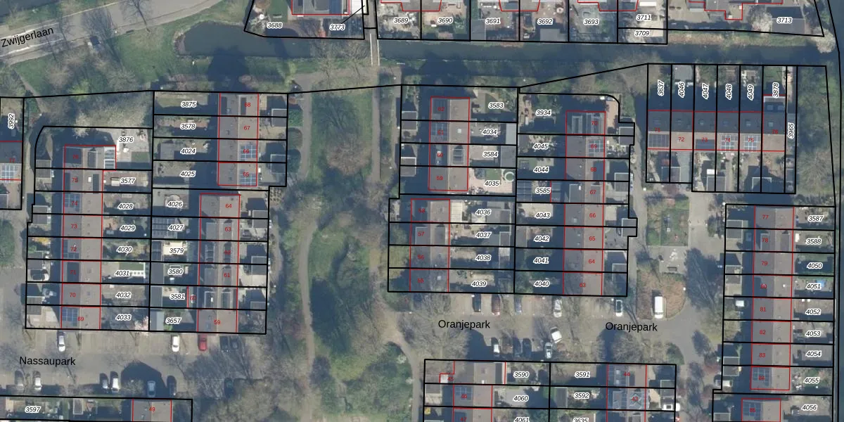 Het perceel waarop Oranjepark 58 staat heeft een oppervlakte van 197 m². Dit is een middelgroot perceel. De perceeloppervlakte wordt geregistreerd door het Kadaster. Gedetailleerde informatie over de maten van dit perceel kunt u vinden in het rapport Kadastrale kaart met maatvoering van Oranjepark 58.