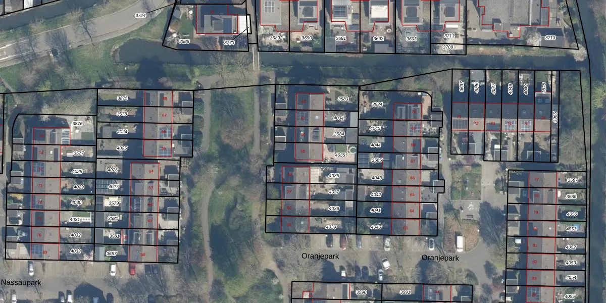 Het perceel waarop Oranjepark 59 staat heeft een oppervlakte van 186 m². Dit is een middelgroot perceel. De perceeloppervlakte wordt geregistreerd door het Kadaster. Gedetailleerde informatie over de maten van dit perceel kunt u vinden in het rapport Kadastrale kaart met maatvoering van Oranjepark 59.