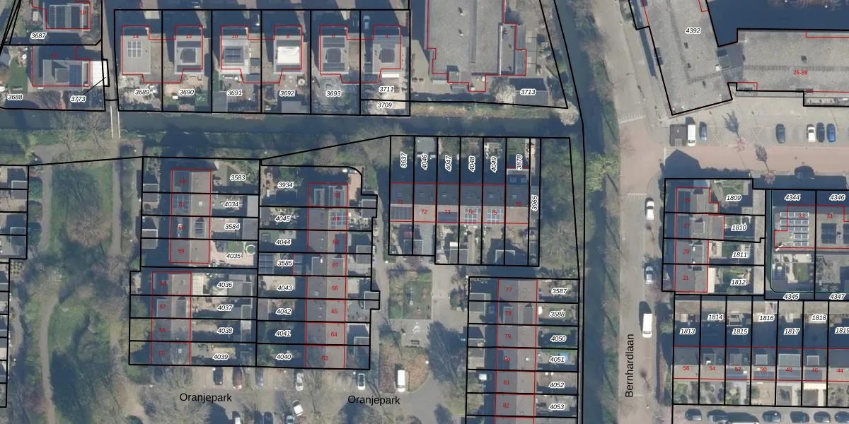 Gebruik de zoekbalk of klik op een perceel voor informatie over de adressen binnen dit perceel.
