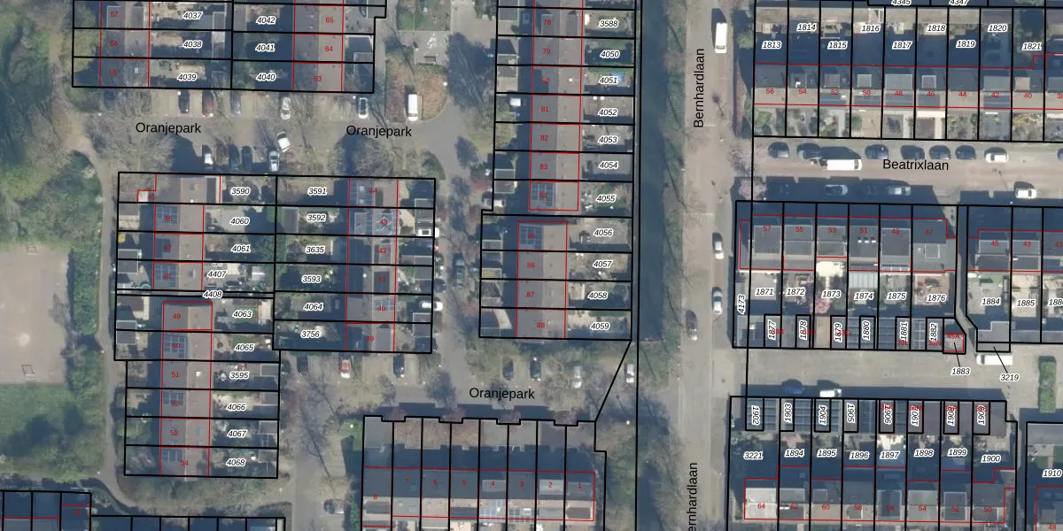Gebruik de zoekbalk of klik op een perceel voor informatie over de adressen binnen dit perceel.