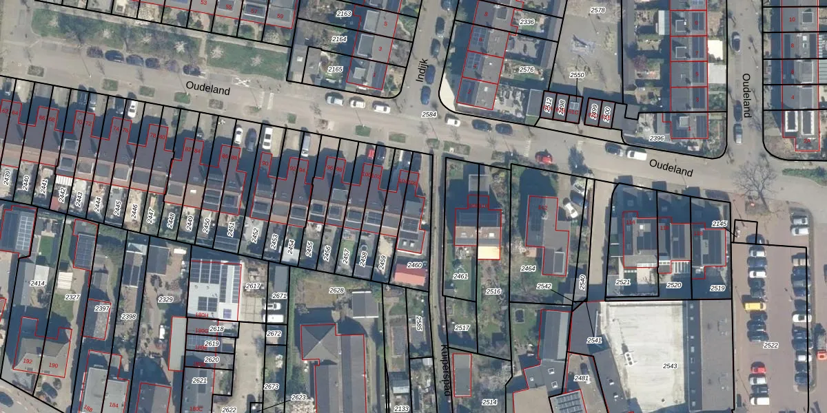Het perceel waarop Oudeland 106 staat heeft een oppervlakte van 235 m². Dit is een middelgroot perceel. De perceeloppervlakte wordt geregistreerd door het Kadaster. Gedetailleerde informatie over de maten van dit perceel kunt u vinden in het rapport Kadastrale kaart met maatvoering van Oudeland 106.