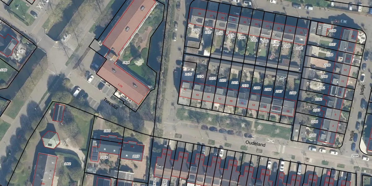 Het perceel waarop Oudeland 41 staat heeft een oppervlakte van 169 m². Dit is een middelgroot perceel. De perceeloppervlakte wordt geregistreerd door het Kadaster. Gedetailleerde informatie over de maten van dit perceel kunt u vinden in het rapport Kadastrale kaart met maatvoering van Oudeland 41.