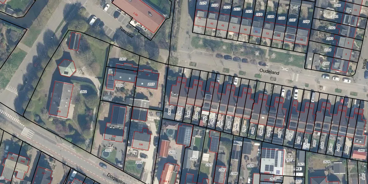 Gebruik de zoekbalk of klik op een perceel voor informatie over de adressen binnen dit perceel.
