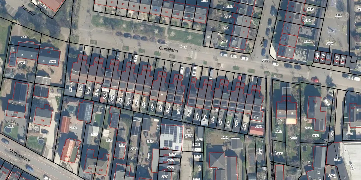 Het perceel waarop Oudeland 88 staat heeft een oppervlakte van 198 m². Dit is een middelgroot perceel. De perceeloppervlakte wordt geregistreerd door het Kadaster. Gedetailleerde informatie over de maten van dit perceel kunt u vinden in het rapport Kadastrale kaart met maatvoering van Oudeland 88.
