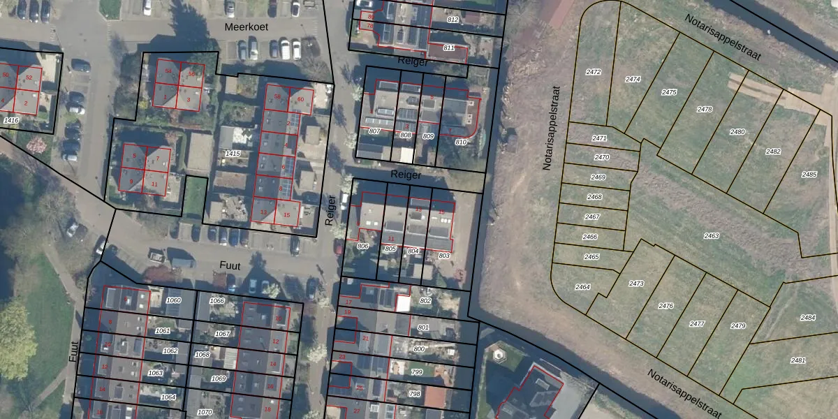 Het perceel waarop Reiger 13 staat heeft een oppervlakte van 126 m². Dit is een middelgroot perceel. De perceeloppervlakte wordt geregistreerd door het Kadaster. Gedetailleerde informatie over de maten van dit perceel kunt u vinden in het rapport Kadastrale kaart met maatvoering van Reiger 13.