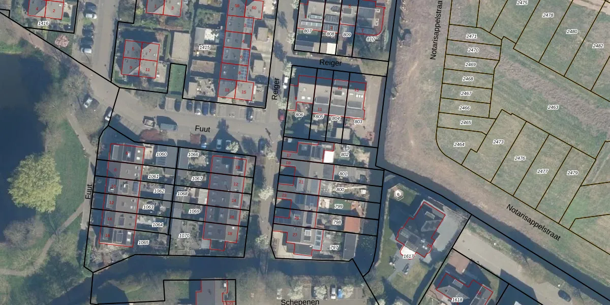 Gebruik de zoekbalk of klik op een perceel voor informatie over de adressen binnen dit perceel.