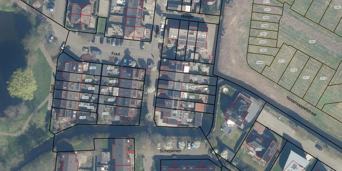 Het perceel waarop Reiger 21 staat heeft een oppervlakte van 185 m². Dit is een middelgroot perceel. De perceeloppervlakte wordt geregistreerd door het Kadaster. Gedetailleerde informatie over de maten van dit perceel kunt u vinden in het rapport Kadastrale kaart met maatvoering van Reiger 21.