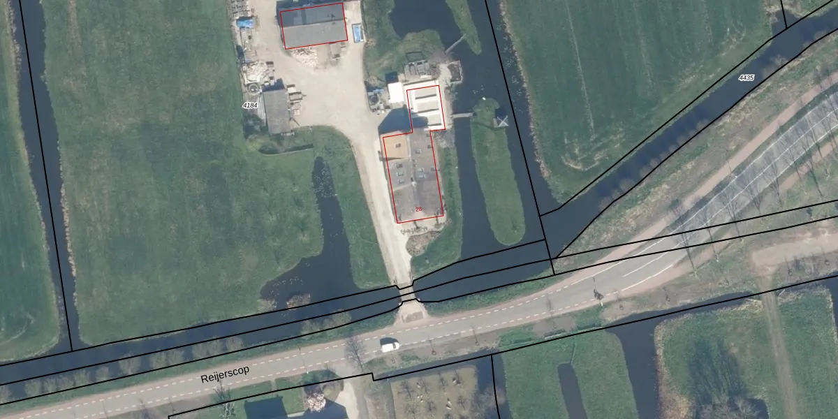 Het perceel waarop Reijerscop 28 staat heeft een oppervlakte van 1,2 ha. Dit is een zeer groot perceel. De perceeloppervlakte wordt geregistreerd door het Kadaster. Gedetailleerde informatie over de maten van dit perceel kunt u vinden in het rapport Kadastrale kaart met maatvoering van Reijerscop 28.