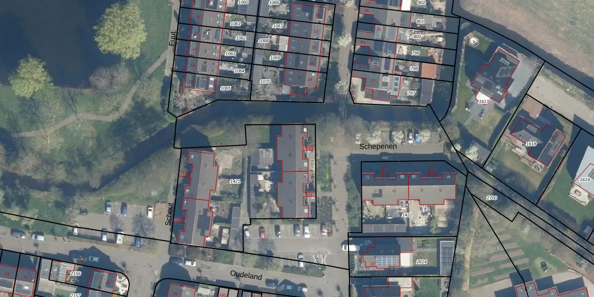 Schepenen 13 is gelegen op kadastraal perceel HML01L1421. Deze kadastrale aanduiding is uniek en wordt gebruikt door het Kadaster om eigendomsrechten en andere zakelijke rechten vast te leggen. Het perceel maakt onderdeel uit van de kadastrale gemeente Harmelen.