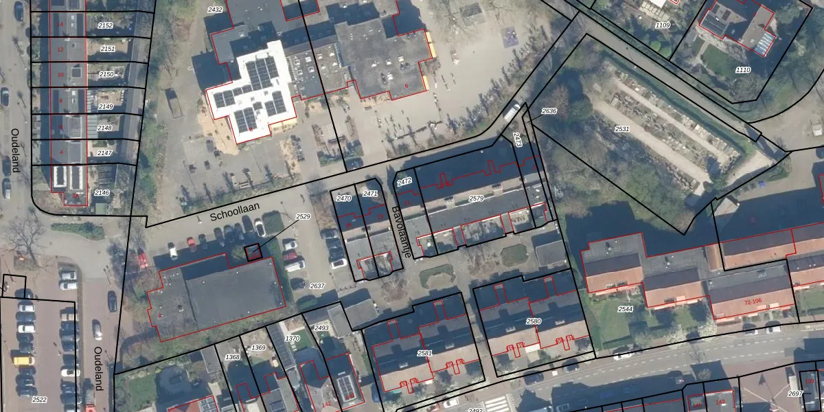 Schoollaan 21 is gelegen op kadastraal perceel HML01E2472. Deze kadastrale aanduiding is uniek en wordt gebruikt door het Kadaster om eigendomsrechten en andere zakelijke rechten vast te leggen. Het perceel maakt onderdeel uit van de kadastrale gemeente Harmelen.