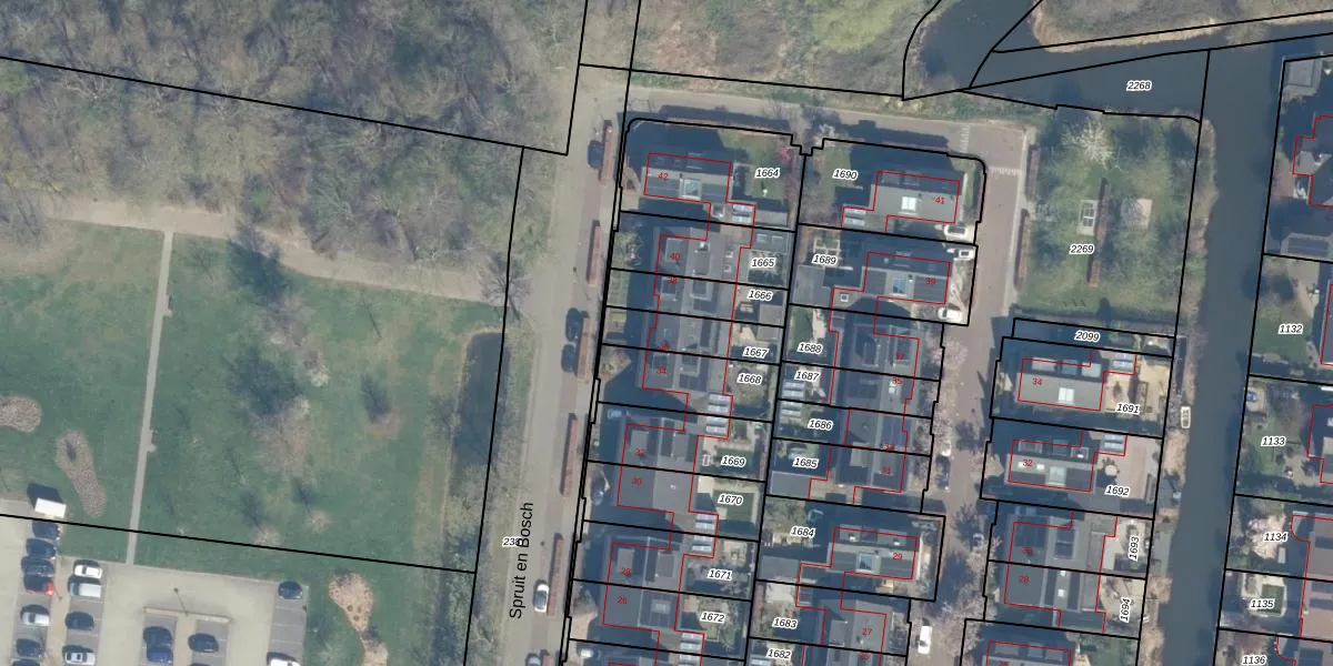 Het perceel waarop Spruit en Bosch 36 staat heeft een oppervlakte van 155 m². Dit is een middelgroot perceel. De perceeloppervlakte wordt geregistreerd door het Kadaster. Gedetailleerde informatie over de maten van dit perceel kunt u vinden in het rapport Kadastrale kaart met maatvoering van Spruit en Bosch 36.
