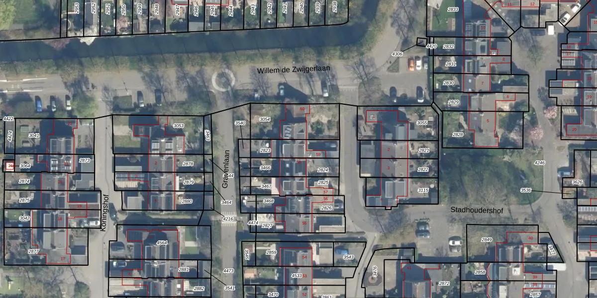 Stadhoudershof 59 is gelegen op kadastraal perceel HML01B2823. Deze kadastrale aanduiding is uniek en wordt gebruikt door het Kadaster om eigendomsrechten en andere zakelijke rechten vast te leggen. Het perceel maakt onderdeel uit van de kadastrale gemeente Harmelen.