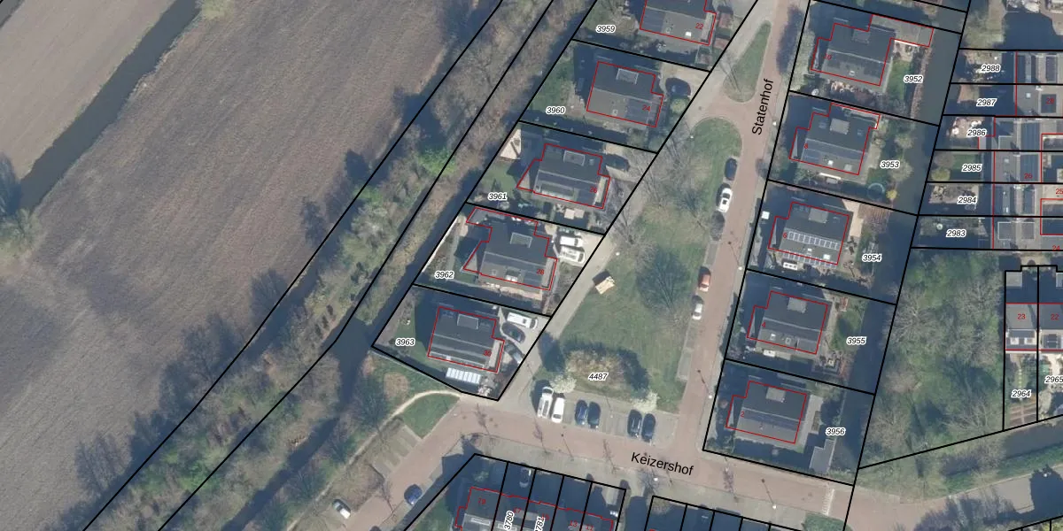 Gebruik de zoekbalk of klik op een perceel voor informatie over de adressen binnen dit perceel.