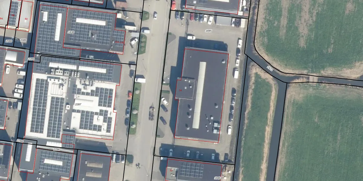 Het perceel waarop Techniekweg 14 staat heeft een oppervlakte van 3604 m². Dit is een zeer groot perceel. De perceeloppervlakte wordt geregistreerd door het Kadaster. Gedetailleerde informatie over de maten van dit perceel kunt u vinden in het rapport Kadastrale kaart met maatvoering van Techniekweg 14.