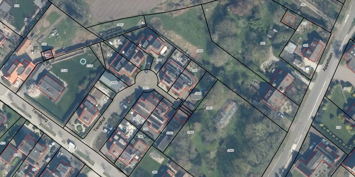 Gebruik de zoekbalk of klik op een perceel voor informatie over de adressen binnen dit perceel.