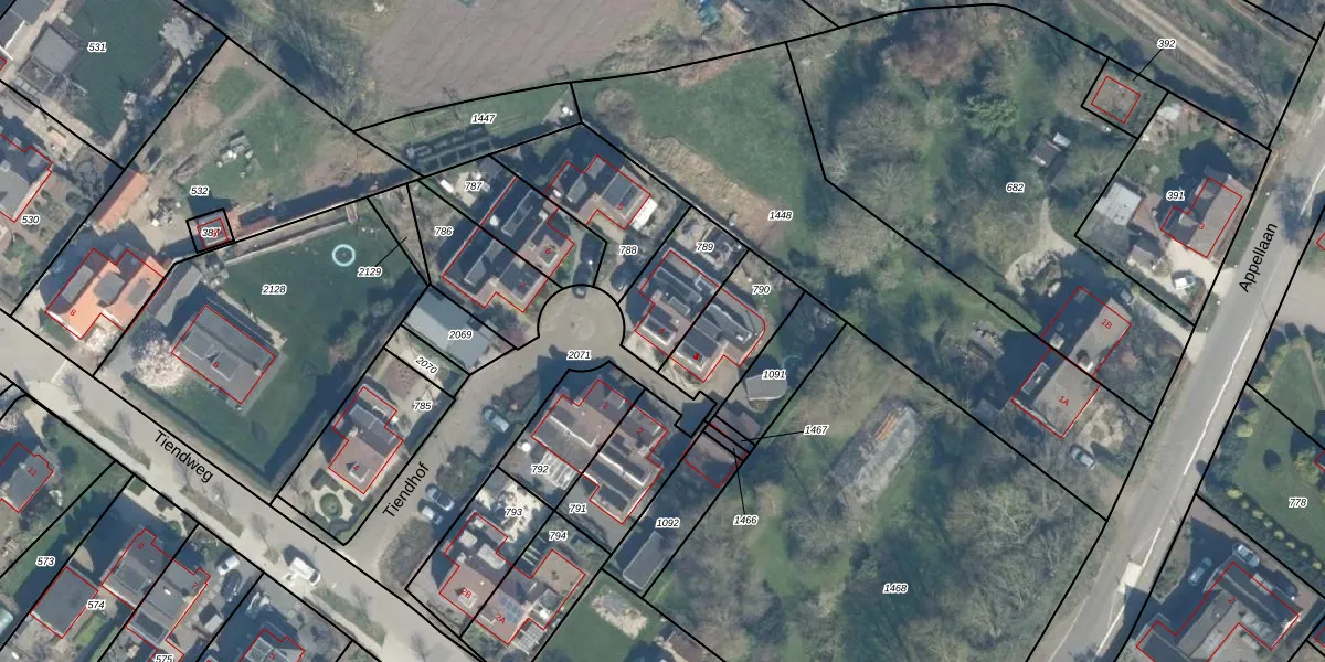 Tiendhof 4 is gelegen op kadastraal perceel HML01L789. Deze kadastrale aanduiding is uniek en wordt gebruikt door het Kadaster om eigendomsrechten en andere zakelijke rechten vast te leggen. Het perceel maakt onderdeel uit van de kadastrale gemeente Harmelen.