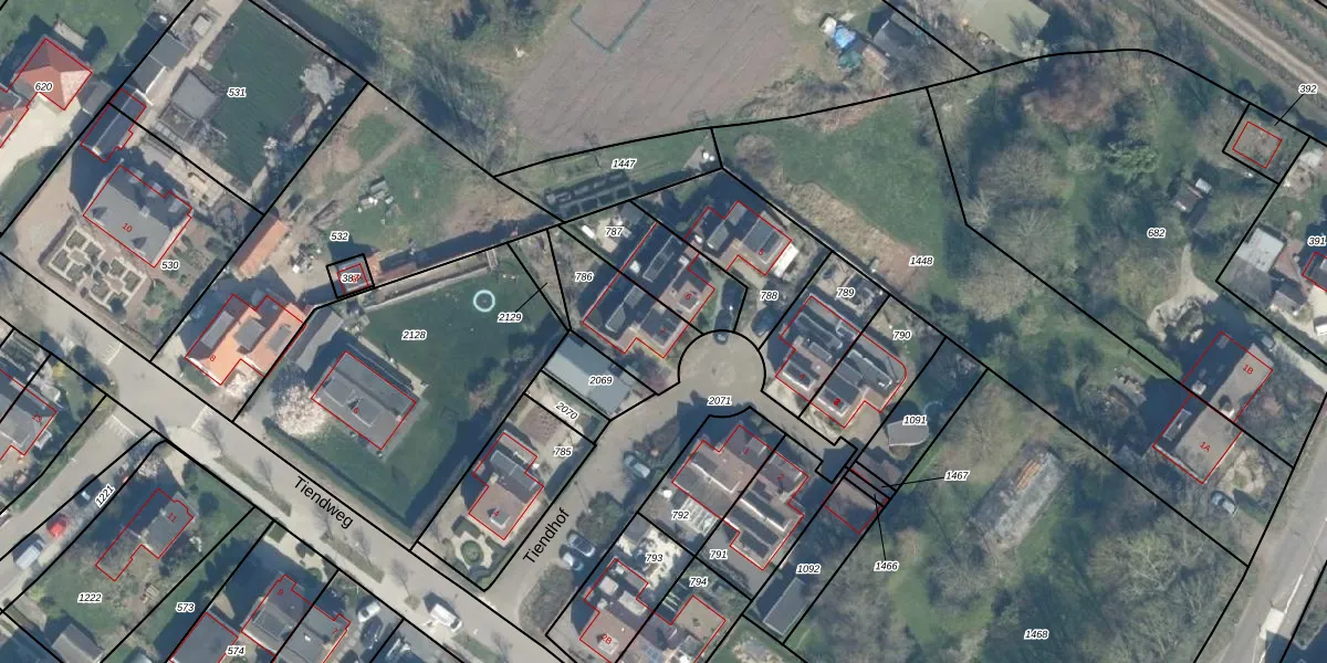 Tiendhof 7 is gelegen op kadastraal perceel HML01L786. Deze kadastrale aanduiding is uniek en wordt gebruikt door het Kadaster om eigendomsrechten en andere zakelijke rechten vast te leggen. Het perceel maakt onderdeel uit van de kadastrale gemeente Harmelen.
