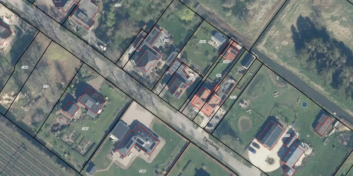 Het perceel waarop Tiendweg 20 staat heeft een oppervlakte van 345 m². Dit is een groot perceel. De perceeloppervlakte wordt geregistreerd door het Kadaster. Gedetailleerde informatie over de maten van dit perceel kunt u vinden in het rapport Kadastrale kaart met maatvoering van Tiendweg 20.