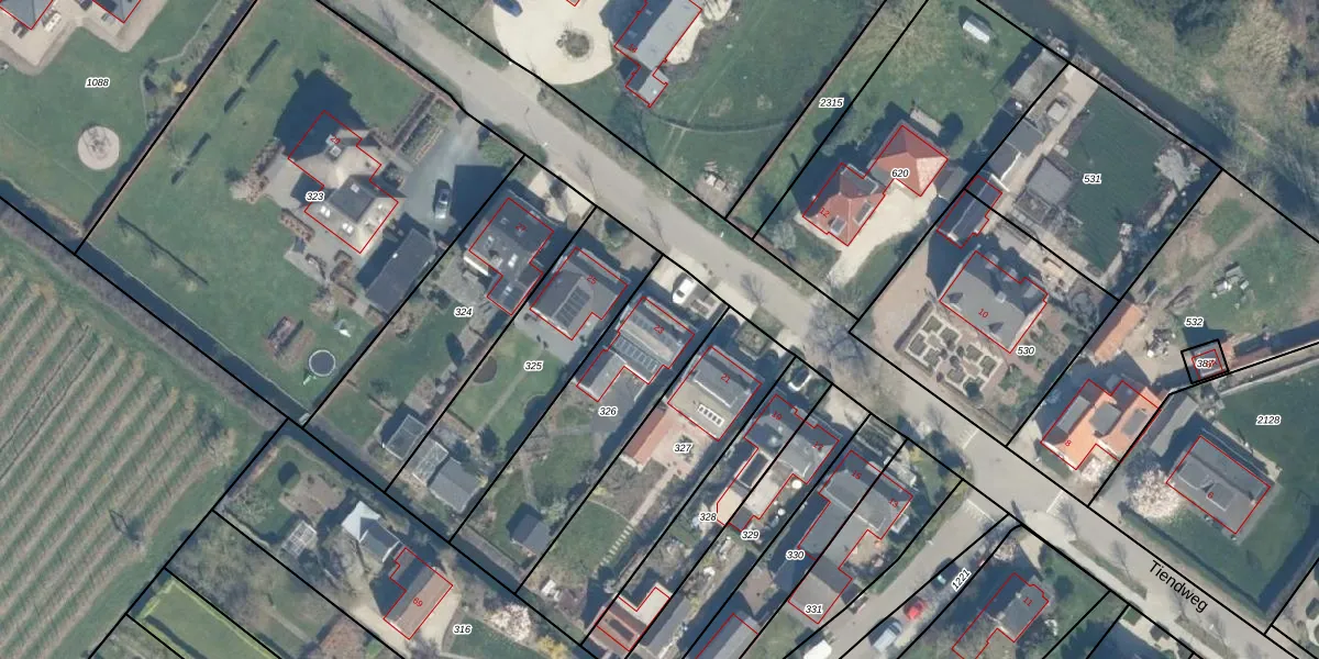 Tiendweg 23 is gelegen op kadastraal perceel HML01L326. Deze kadastrale aanduiding is uniek en wordt gebruikt door het Kadaster om eigendomsrechten en andere zakelijke rechten vast te leggen. Het perceel maakt onderdeel uit van de kadastrale gemeente Harmelen.