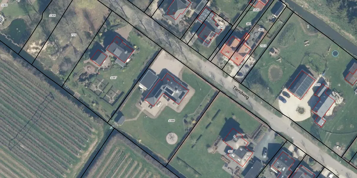 Het perceel waarop Tiendweg 29-A staat heeft een oppervlakte van 2115 m². Dit is een zeer groot perceel. De perceeloppervlakte wordt geregistreerd door het Kadaster. Gedetailleerde informatie over de maten van dit perceel kunt u vinden in het rapport Kadastrale kaart met maatvoering van Tiendweg 29-A.