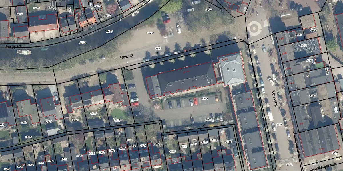 Het perceel waarop Uitweg 1-L staat heeft een oppervlakte van 3640 m². Dit is een zeer groot perceel. De perceeloppervlakte wordt geregistreerd door het Kadaster. Gedetailleerde informatie over de maten van dit perceel kunt u vinden in het rapport Kadastrale kaart met maatvoering van Uitweg 1-L.