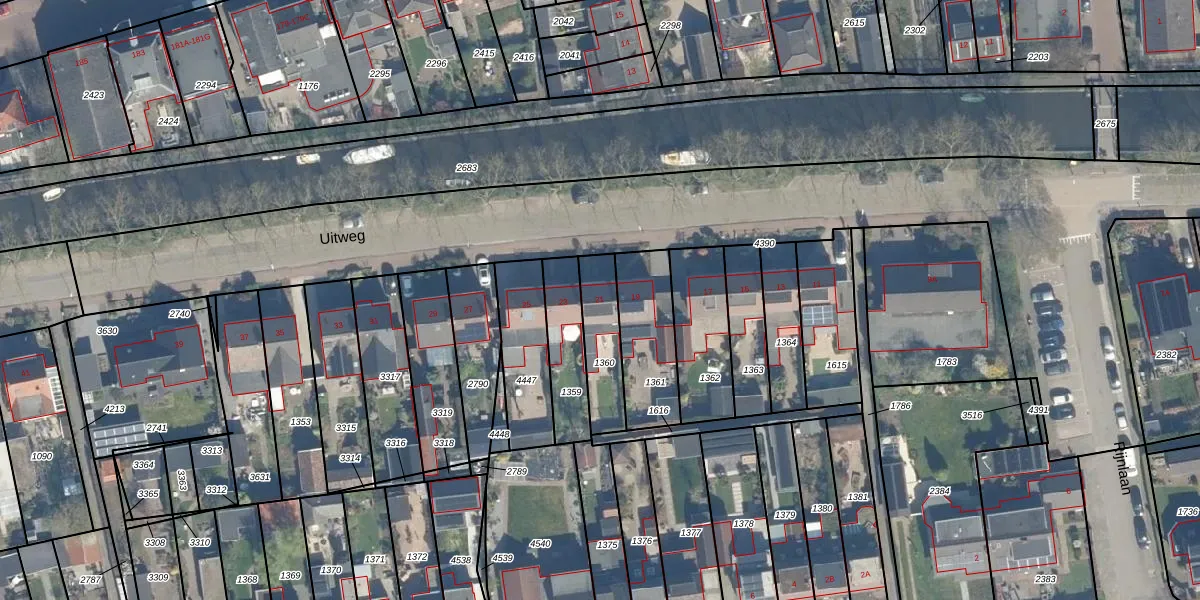 Het perceel waarop Uitweg 21 staat heeft een oppervlakte van 181 m². Dit is een middelgroot perceel. De perceeloppervlakte wordt geregistreerd door het Kadaster. Gedetailleerde informatie over de maten van dit perceel kunt u vinden in het rapport Kadastrale kaart met maatvoering van Uitweg 21.
