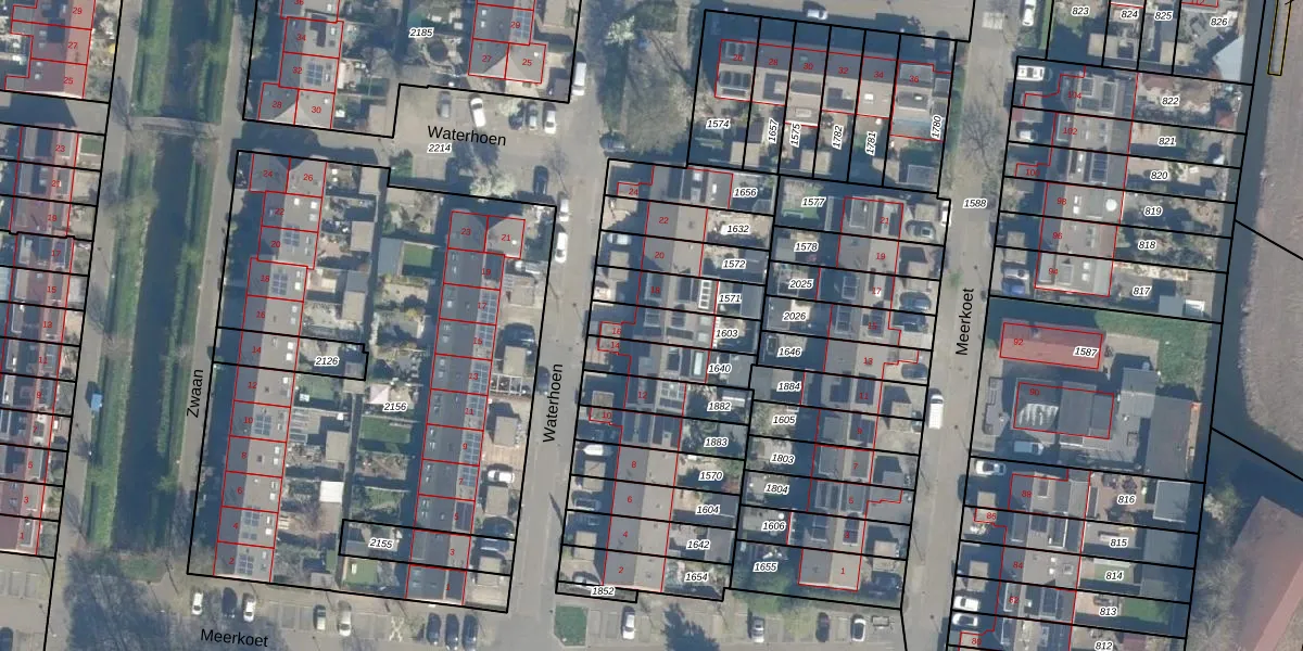 Gebruik de zoekbalk of klik op een perceel voor informatie over de adressen binnen dit perceel.
