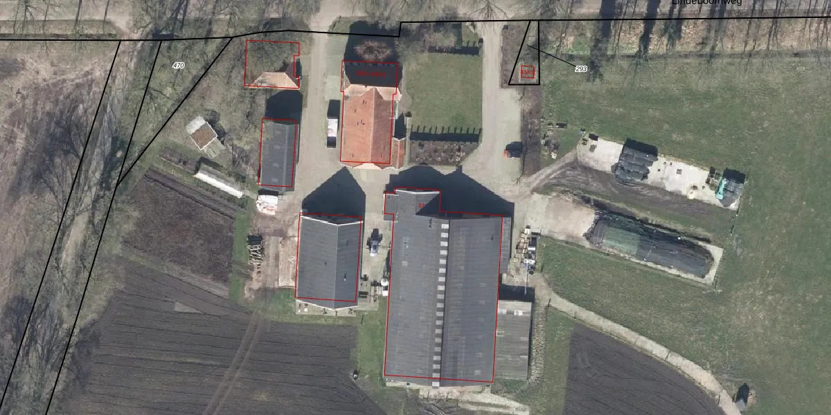 Het perceel waarop Lindeboomweg 33 staat heeft een oppervlakte van 5,7 ha. Dit is een zeer groot perceel. De perceeloppervlakte wordt geregistreerd door het Kadaster. Gedetailleerde informatie over de maten van dit perceel kunt u vinden in het rapport Kadastrale kaart met maatvoering van Lindeboomweg 33.