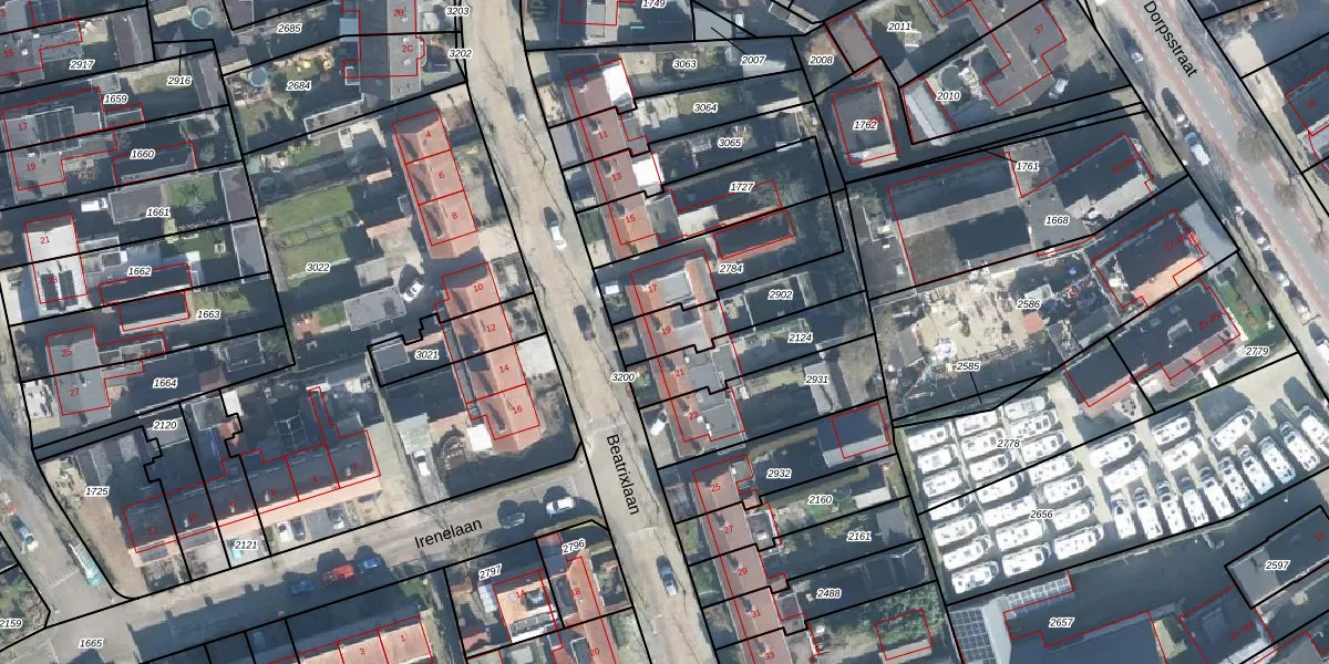 Gebruik de zoekbalk of klik op een perceel voor informatie over de adressen binnen dit perceel.