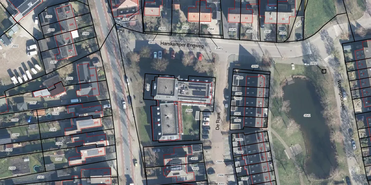Het perceel waarop De Rank 16 staat heeft een oppervlakte van 1033 m². Dit is een zeer groot perceel. De perceeloppervlakte wordt geregistreerd door het Kadaster. Gedetailleerde informatie over de maten van dit perceel kunt u vinden in het rapport Kadastrale kaart met maatvoering van De Rank 16.