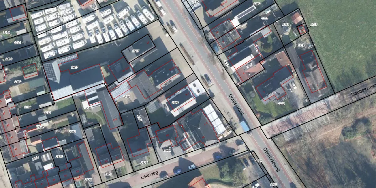 Dorpsstraat 7 is gelegen op kadastraal perceel OTL02G3503. Deze kadastrale aanduiding is uniek en wordt gebruikt door het Kadaster om eigendomsrechten en andere zakelijke rechten vast te leggen. Het perceel maakt onderdeel uit van de kadastrale gemeente Otterlo.