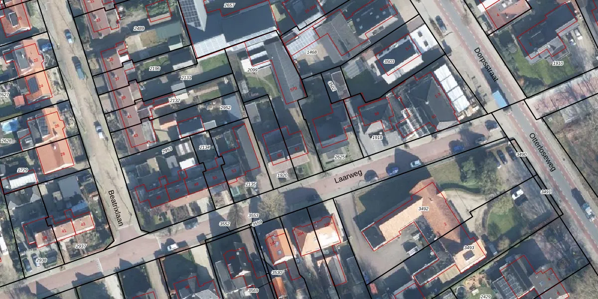 Het perceel waarop Laarweg 57 staat heeft een oppervlakte van 673 m². Dit is een groot perceel. De perceeloppervlakte wordt geregistreerd door het Kadaster. Gedetailleerde informatie over de maten van dit perceel kunt u vinden in het rapport Kadastrale kaart met maatvoering van Laarweg 57.