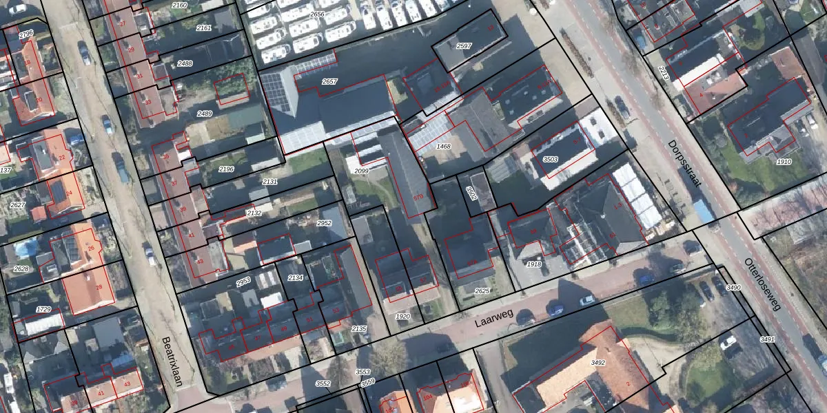 Het perceel waarop Laarweg 57-B staat heeft een oppervlakte van 673 m². Dit is een groot perceel. De perceeloppervlakte wordt geregistreerd door het Kadaster. Gedetailleerde informatie over de maten van dit perceel kunt u vinden in het rapport Kadastrale kaart met maatvoering van Laarweg 57-B.