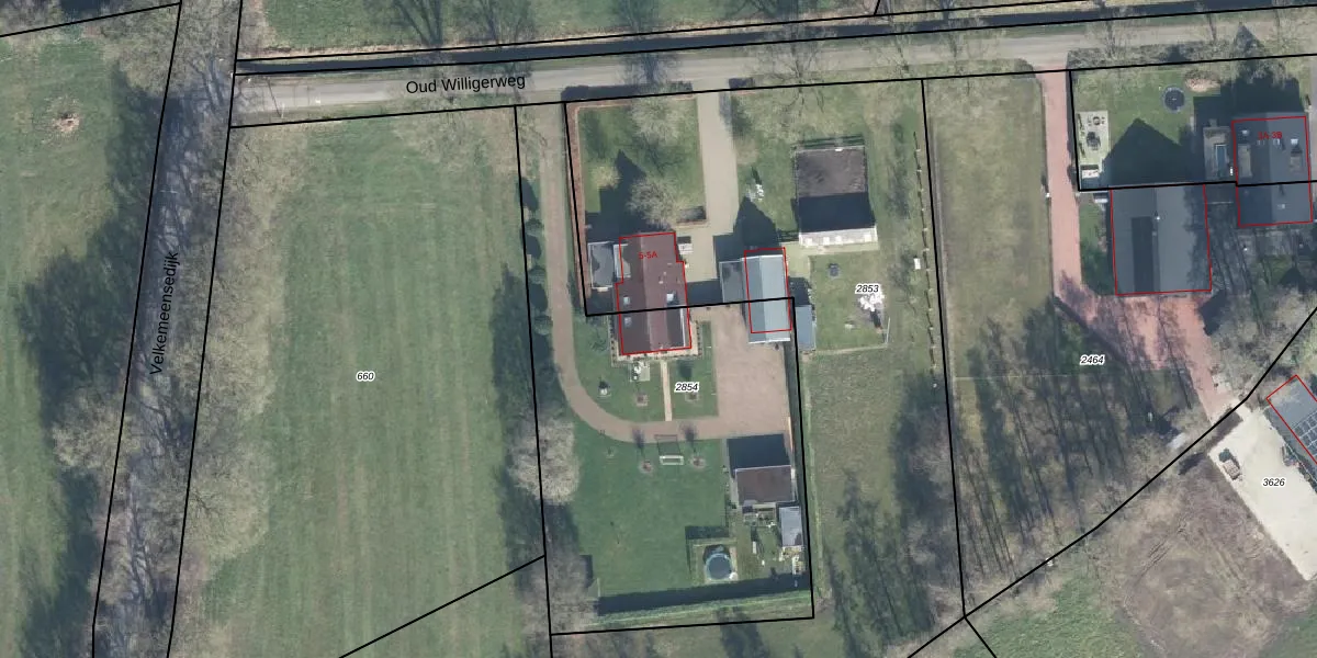 Oud Willigerweg 5-A is gelegen op kadastraal perceel OTL02G2854. Deze kadastrale aanduiding is uniek en wordt gebruikt door het Kadaster om eigendomsrechten en andere zakelijke rechten vast te leggen. Het perceel maakt onderdeel uit van de kadastrale gemeente Otterlo.