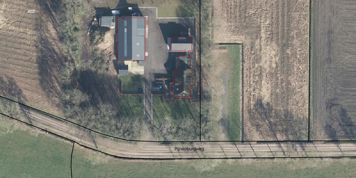 Het perceel waarop Pijnenburgweg 8-A staat heeft een oppervlakte van 2,0 ha. Dit is een zeer groot perceel. De perceeloppervlakte wordt geregistreerd door het Kadaster. Gedetailleerde informatie over de maten van dit perceel kunt u vinden in het rapport Kadastrale kaart met maatvoering van Pijnenburgweg 8-A.
