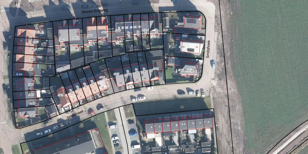 Het perceel waarop Smitshoek 21 staat heeft een oppervlakte van 249 m². Dit is een middelgroot perceel. De perceeloppervlakte wordt geregistreerd door het Kadaster. Gedetailleerde informatie over de maten van dit perceel kunt u vinden in het rapport Kadastrale kaart met maatvoering van Smitshoek 21.
