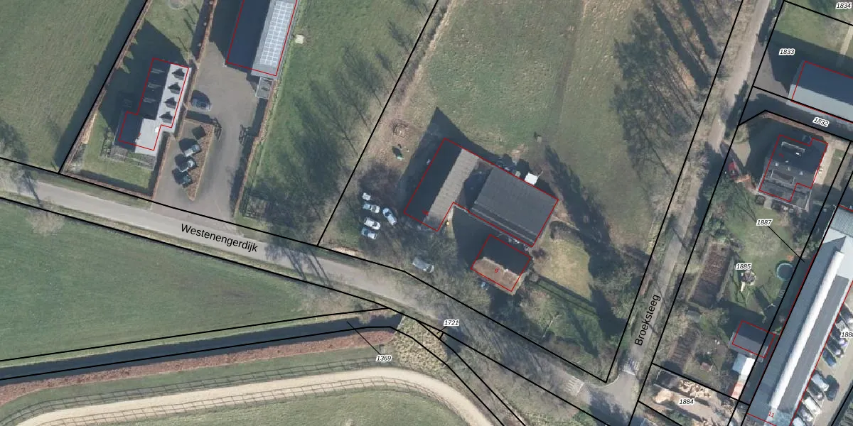 Het perceel waarop Westenengerdijk 9-A staat heeft een oppervlakte van 1,0 ha. Dit is een zeer groot perceel. De perceeloppervlakte wordt geregistreerd door het Kadaster. Gedetailleerde informatie over de maten van dit perceel kunt u vinden in het rapport Kadastrale kaart met maatvoering van Westenengerdijk 9-A.