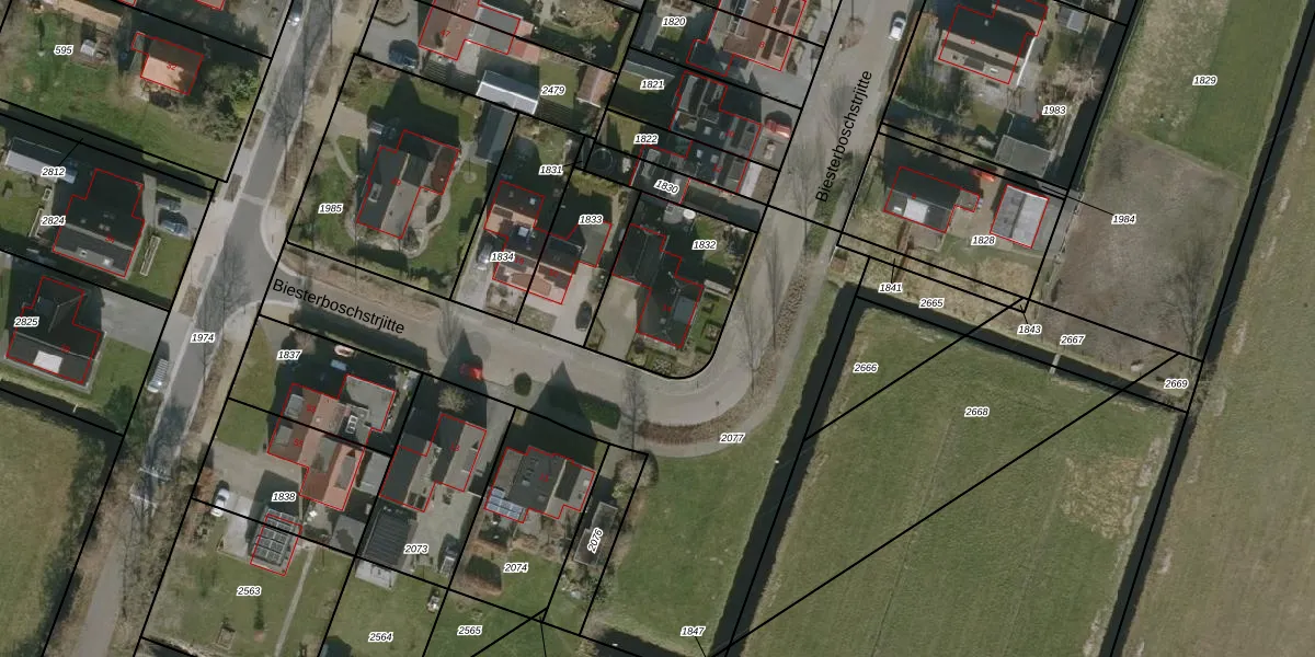 Biesterboschstrjitte 14 is gelegen op kadastraal perceel NEK00L1832. Deze kadastrale aanduiding is uniek en wordt gebruikt door het Kadaster om eigendomsrechten en andere zakelijke rechten vast te leggen. Het perceel maakt onderdeel uit van de kadastrale gemeente Nijehaske.