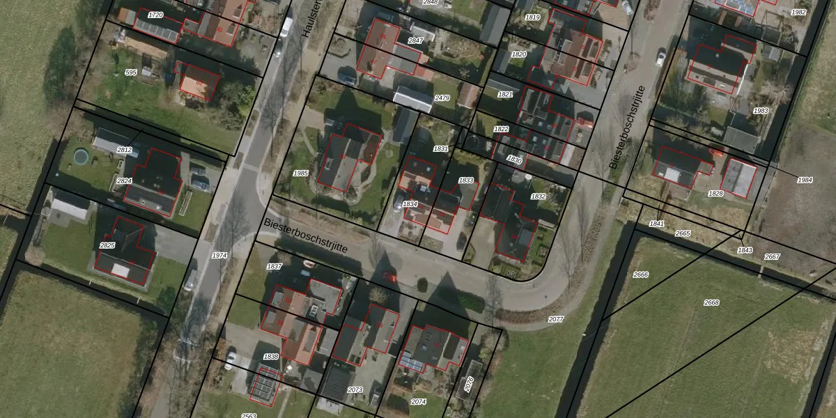 Gebruik de zoekbalk of klik op een perceel voor informatie over de adressen binnen dit perceel.